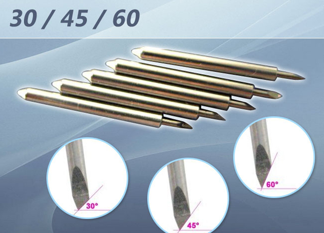 Для стандартной резки рекомендуется использовать лезвия с углом 45 градусов. Для резки более плотных материалов - лезвия с углов в 60 градусов.