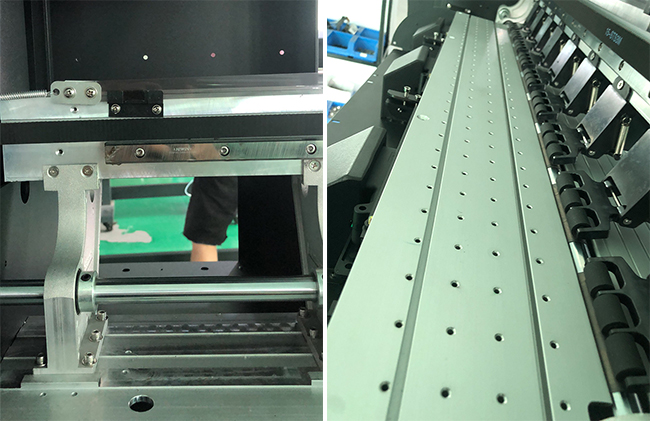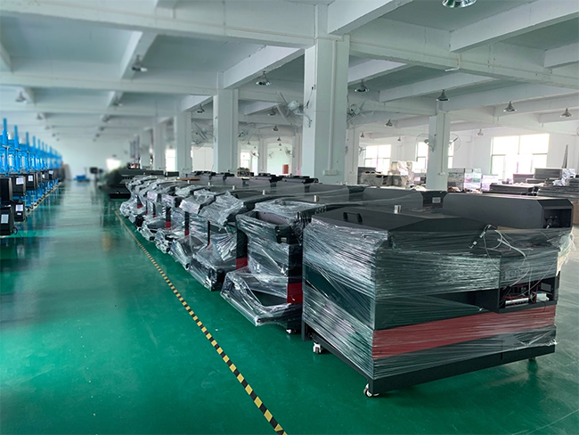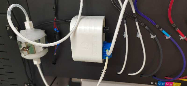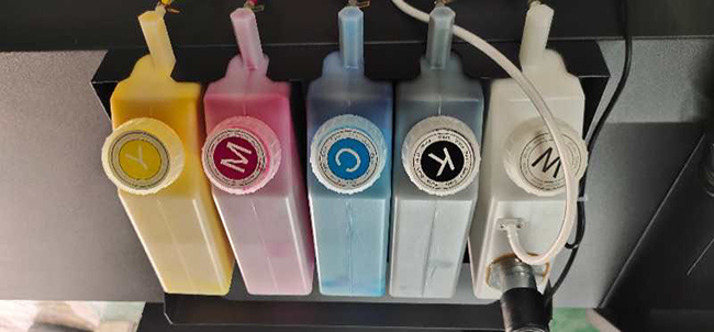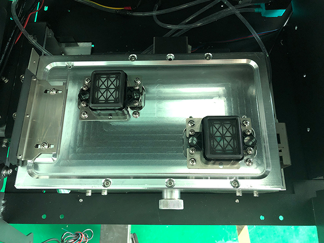 2. Печать на ПЭТ-пленке с помощью двухголовочного принтера 3200A1 с использованием текстильных пигментных чернил CMYK+WHITE.
