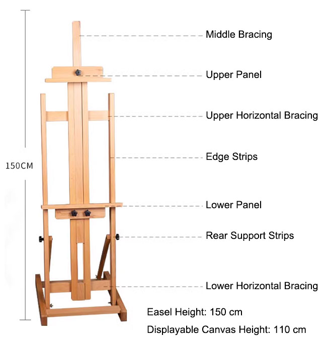 Конструкция мольберта предусматривает возможность свободной регулировки высоты, что обеспечивает оптимальные условия для работы и позволяет адаптировать рабочее пространство в соответствии с индивидуальными потребностями.