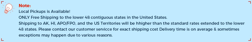 Canada and Mexico Customers need to pay the extra delivery charges, Please contact our customer service in advance.