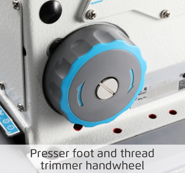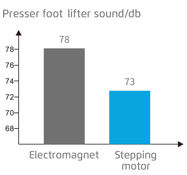 the presser foot lifting sound is 3.5 decibels lighter than ordinary electromagnets, which solves the problem of electromagnet's weakness and durability, faster response and higher efficiency; the presser foot can also be lifted by hand-wheel in the power-off state, which is easy to adjust.
